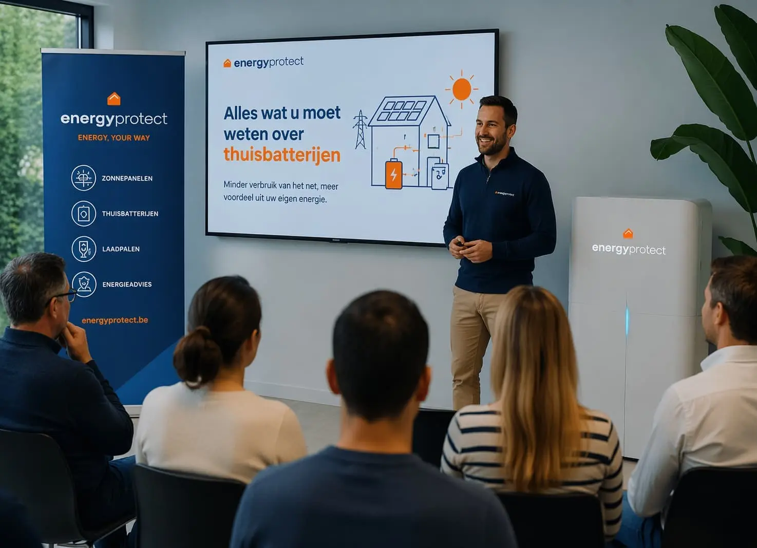 Tijdens het eerste moment ontdek je of een thuisbatterij vandaag écht interessant is. We geven je een helder en eerlijk beeld, gevolgd door een vraag- en antwoordmoment.